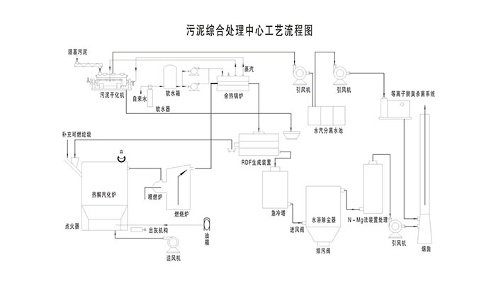將干燥好的污泥結(jié)合各地區(qū)收集來的一定量(與熱解氣化爐相對應(yīng))的垃圾直接投入熱解氣化爐,利用垃圾本身熱值強(qiáng)制性地產(chǎn)生可燃?xì)怏w,從而達(dá)到垃圾資源化。本套系統(tǒng)由于是穩(wěn)定燃燒,設(shè)備使用壽命長。勞動(dòng)環(huán)境好,沒任何臭氣且占地面積小,營造了一種綠色工廠環(huán)境。