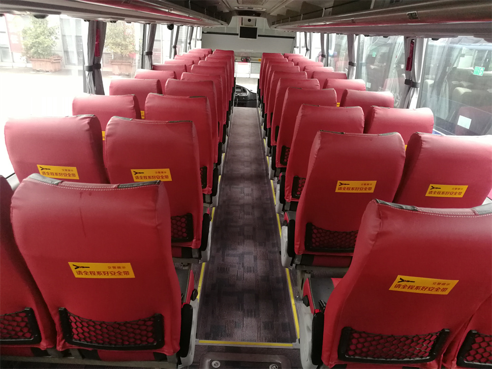 車輛改造中,內(nèi)飾參考祿口機(jī)場宇通車的高端商務(wù)風(fēng)格,全車采用仿地毯的地板革;皮質(zhì)座套采用顏色大膽的紅黑配,視覺效果上更顯檔次;為兼顧服務(wù)性和功能性,將原來的普通安全帶換成了自動回位安全帶。此外,更換了天窗、尾燈、前圍、雨刮等配件,并做了整車油漆。通過全面的改造,讓原本平平無奇的車輛重獲新生,在承接業(yè)務(wù)上盡顯優(yōu)勢。
