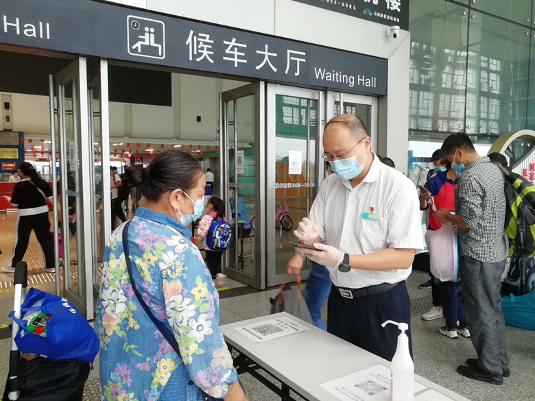為進一步做好疫情防控工作,車站嚴格落實掃碼進站措施,在進站口等多處張貼場所碼,方便進站旅客提前掃描出示,減少人員聚集。在進站口設(shè)置了紅外線體溫監(jiān)測儀,進站旅客實現(xiàn)100%測溫通行。
