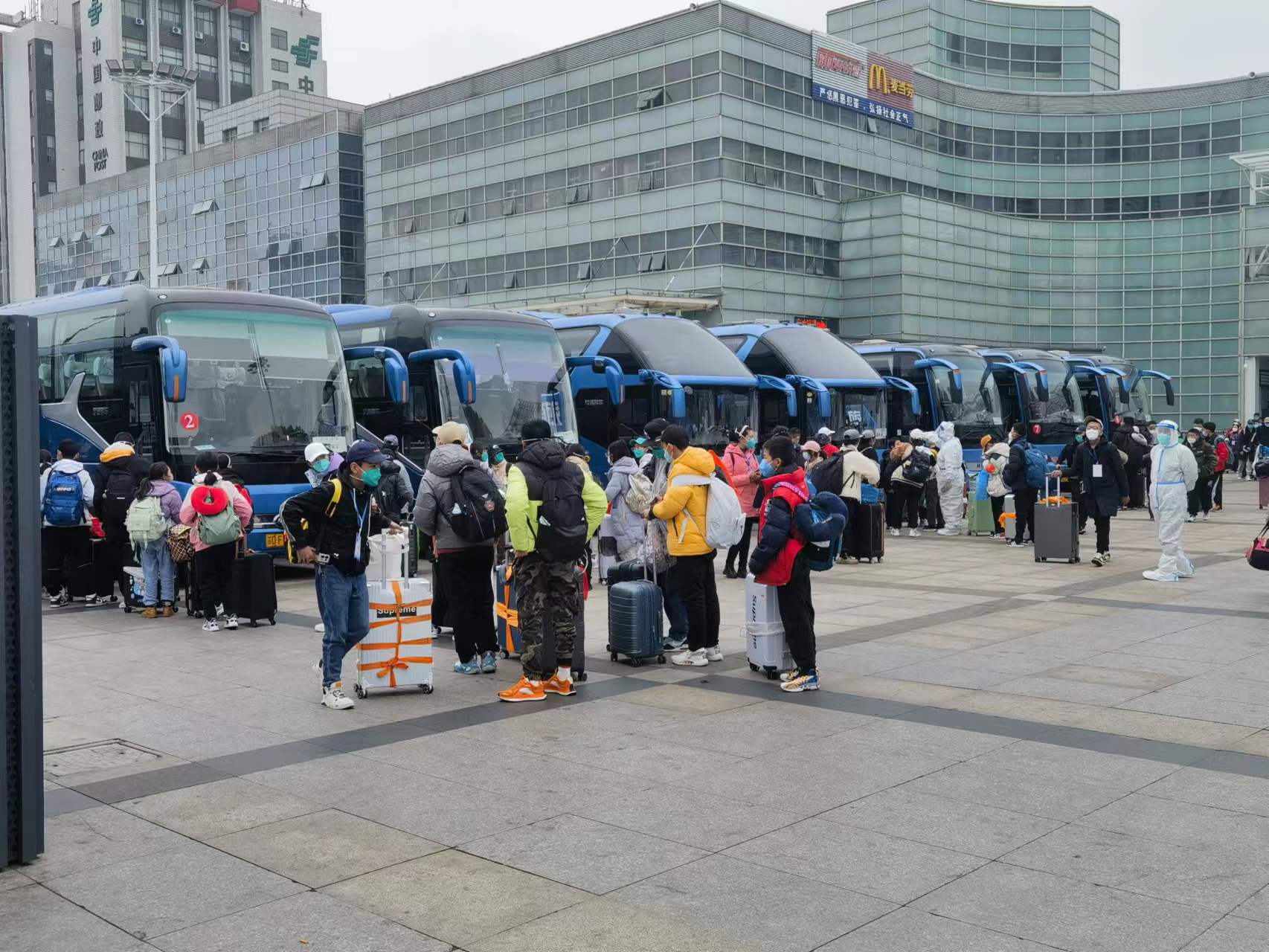 當天,19輛轉(zhuǎn)運大巴早上8:00準時出發(fā),到達火車站南廣場后,在調(diào)度員的指揮下,整齊停放在引導(dǎo)處,原地等待。10:11,專列進站,600多名西藏學生陸續(xù)出站,由駕駛員引領(lǐng)至對應(yīng)的大巴車,并在駕駛員的幫助下,安放行李、更換口罩、登車入座。僅用30分鐘,所有學生全部安排妥當,轉(zhuǎn)運大巴逐一開往對應(yīng)酒店。一路上安全平穩(wěn),到達酒店后,駕駛員指揮學生有序下車,拿好行李,跟酒店做好交接,辦理移交手續(xù)。隨后,車輛、駕駛員立即做消殺,下午2點左右,大巴全部返回,轉(zhuǎn)運任務(wù)圓滿完成。