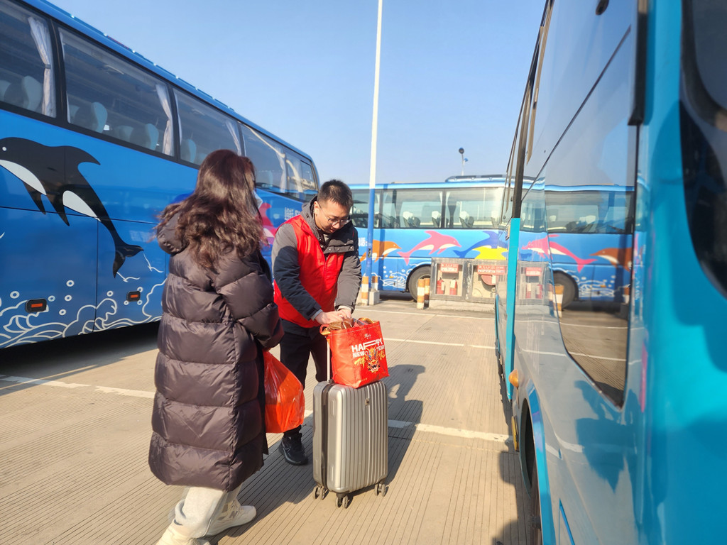 啟動儀式后,2024春運志愿服務活動正式開始,首批上崗的10名順風志愿者,分布在進站口、取票處、檢票口等處,為旅客送上了新年祝福,提供購票指導、提拿行李、幫扶引導等服務,為廣大旅客打造一條溫暖的“回家路”。