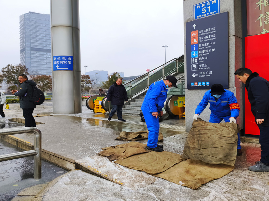 公司通過(guò)GPS動(dòng)態(tài)監(jiān)控平臺(tái)掌握營(yíng)運(yùn)車輛在途狀況,及時(shí)提醒路況信息,要求減速慢行。為預(yù)防雪后濕滑及冰凍,常州各車站組織人員在旅客進(jìn)出口處、電梯口、車輛上下坡處等重點(diǎn)結(jié)冰區(qū)域撒鹽并鋪設(shè)防滑麻袋,在進(jìn)站候車扶梯、樓梯處做好安全提醒,全力保障旅客出行安全。23日凌晨時(shí)分,公司安管人員帶隊(duì)上路上線,查看道路情況,并根據(jù)探得的道路狀況,對(duì)班次作出了調(diào)整,確保春運(yùn)期間旅客的出行安全。