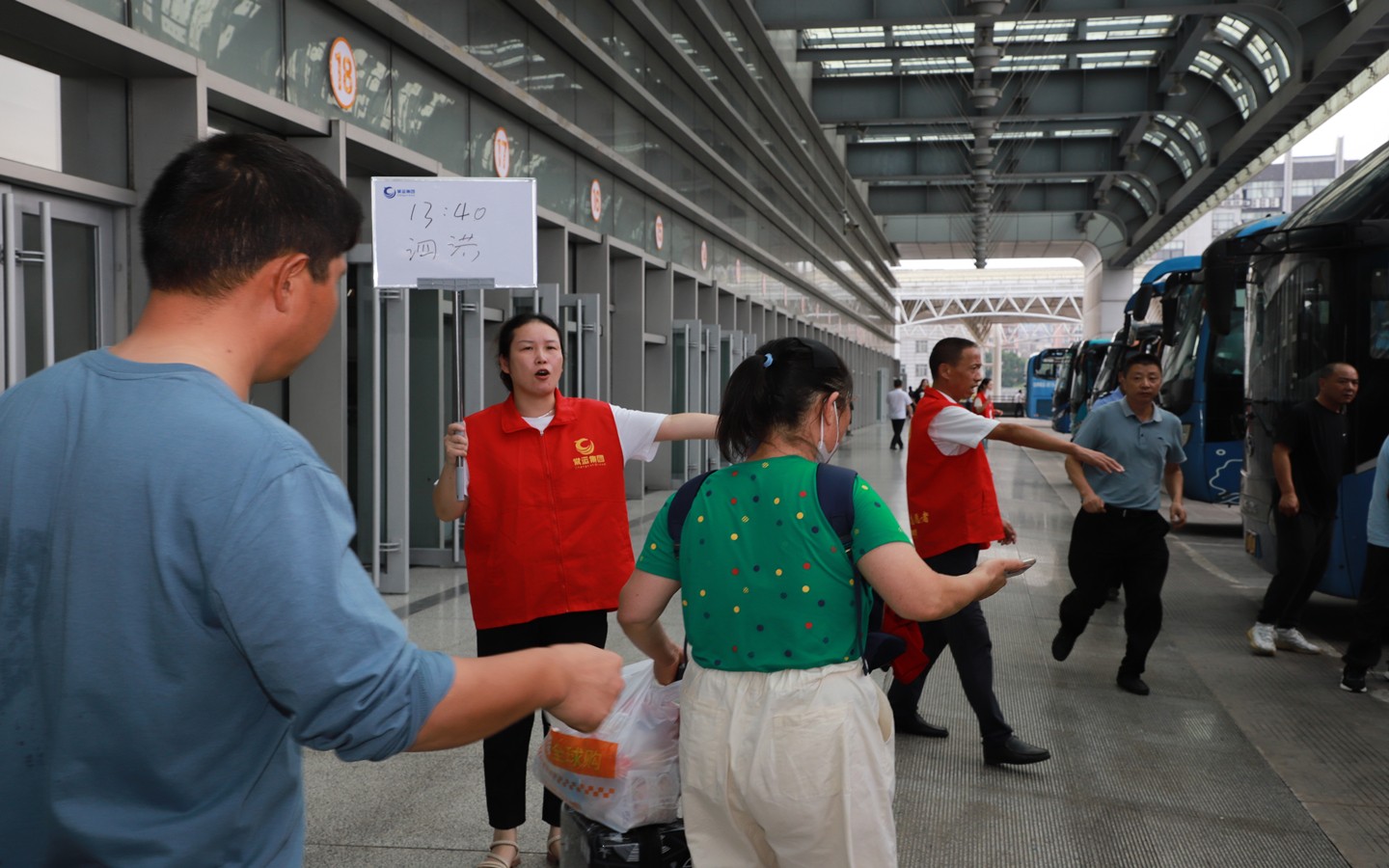 客流高峰期間,公司啟動(dòng)應(yīng)急預(yù)案,在重要崗位增派人手,通過限流、分流等方式有序引導(dǎo)乘客進(jìn)站,在發(fā)車口,站務(wù)員、駕駛員、站場(chǎng)車輛指揮員與志愿者密切配合,分工負(fù)責(zé),有條不紊做好檢票、引導(dǎo)工作,確保旅客順利上車,踏上旅途。